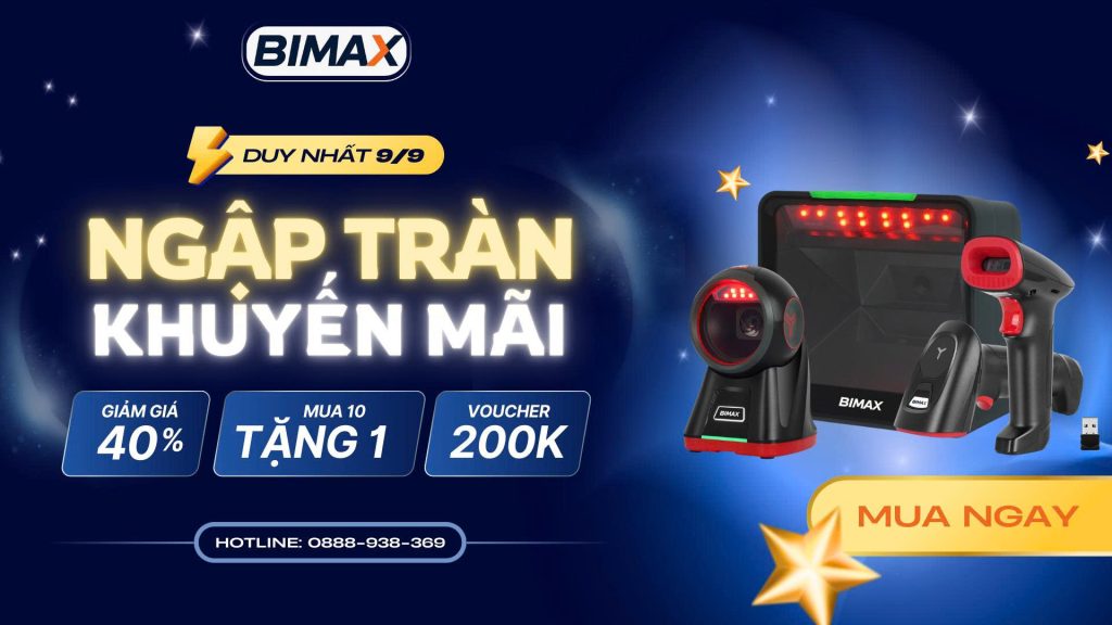 BIMAX – thương hiệu hàng đầu trong lĩnh vực thiết bị đọc mã vạch và giải pháp bán hàng thông minh – đã chính thức có mặt tại thị trường Việt Nam. Nhân dịp ra mắt, chúng tôi mang đến chương trình khuyến mãi cực lớn chỉ trong ngày 9/9 với nhiều ưu đãi hấp dẫn dành cho khách hàng: