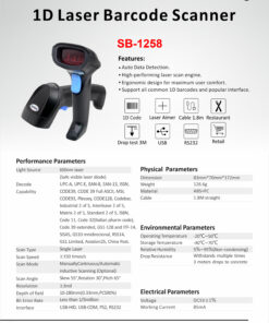 Khả năng đọc : Tất cả các chuẩn mã vạch 1D Độ bền : Chịu được rơi nhiều lần từ độ cao 3m Kết nối : USB ( Caple USB 2m).