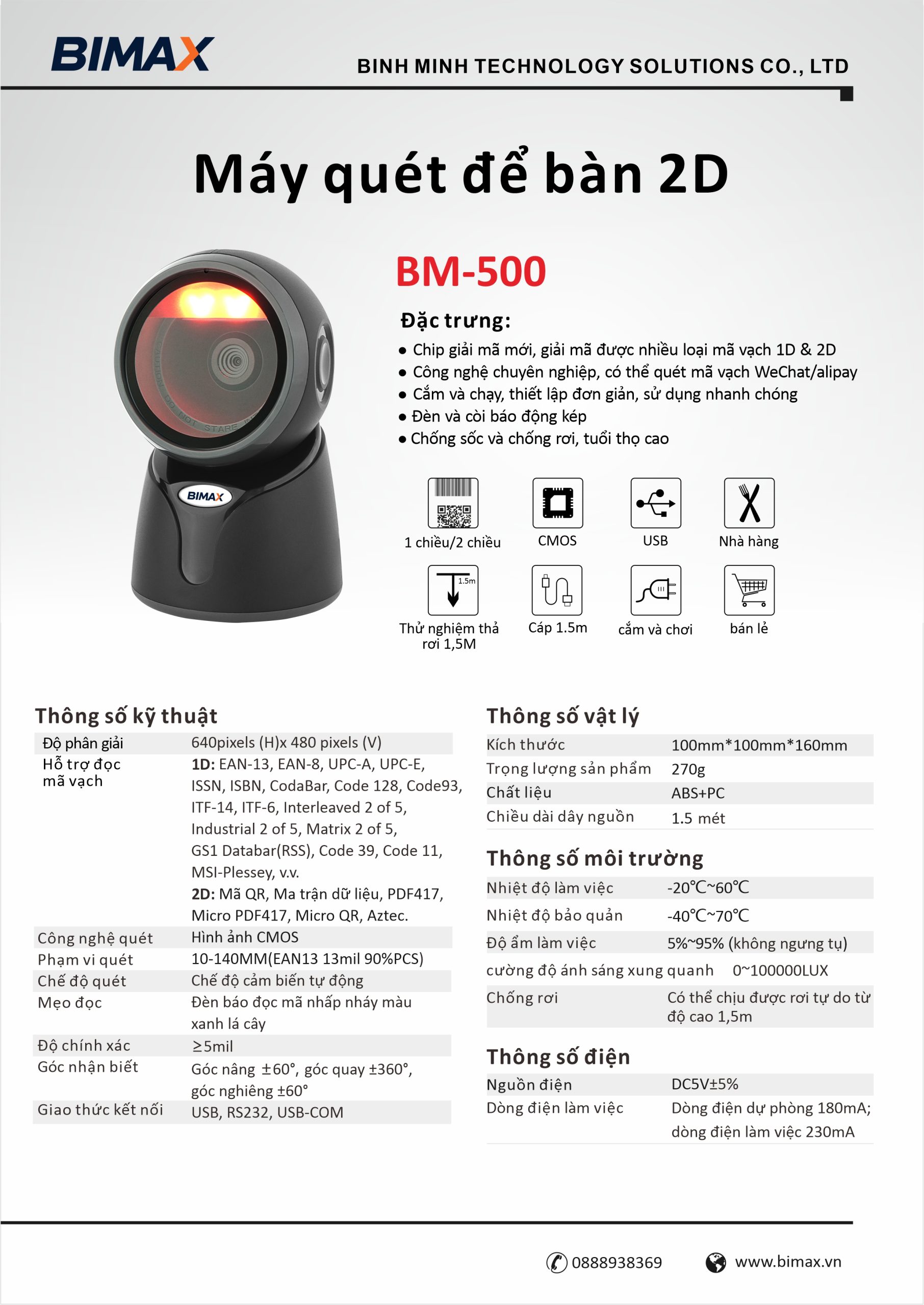 • Máy quét mã vạch 2D Bimax BM-500 Máy quét mã vạch 2D Bimax BM-500