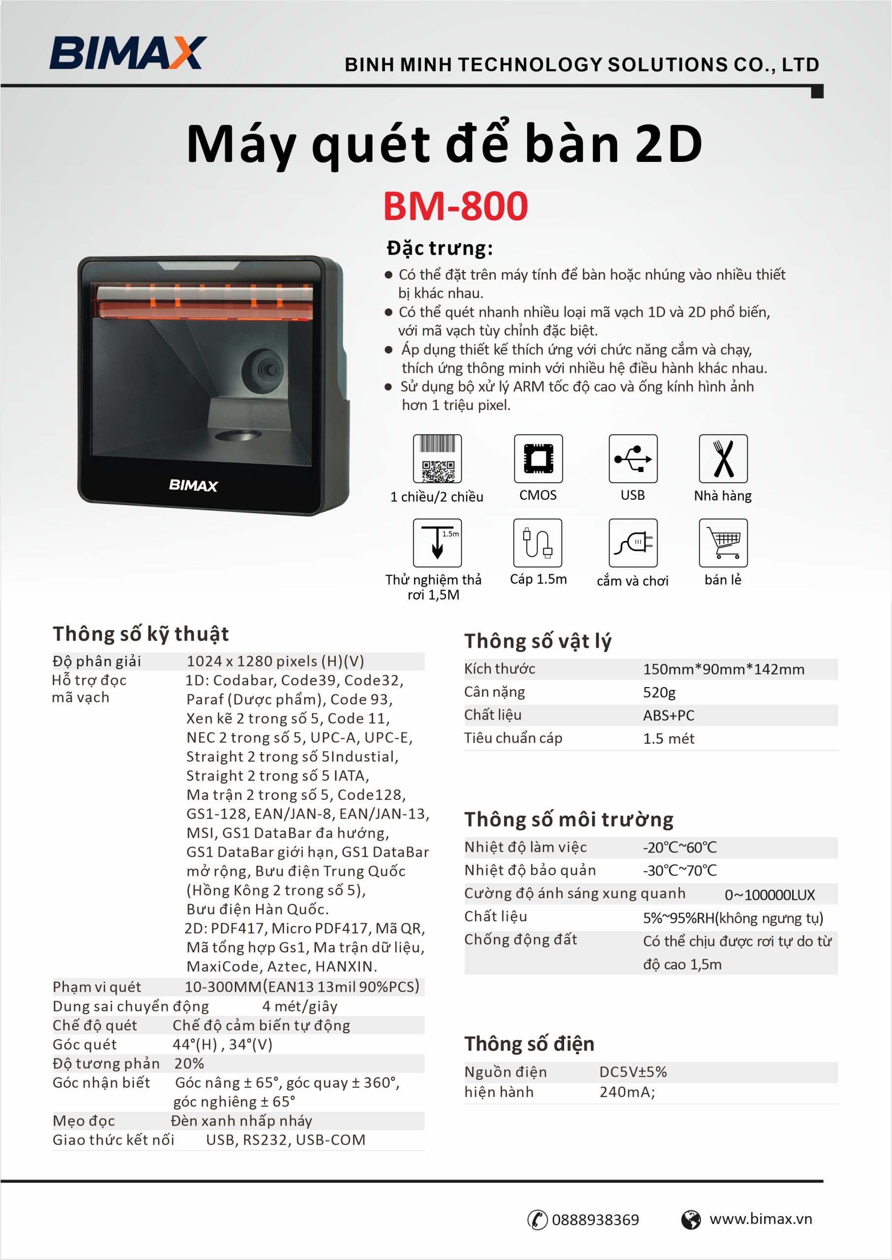• Máy quét mã vạch 2D Bimax BM-800 Máy quét mã vạch 2D Bimax BM-800