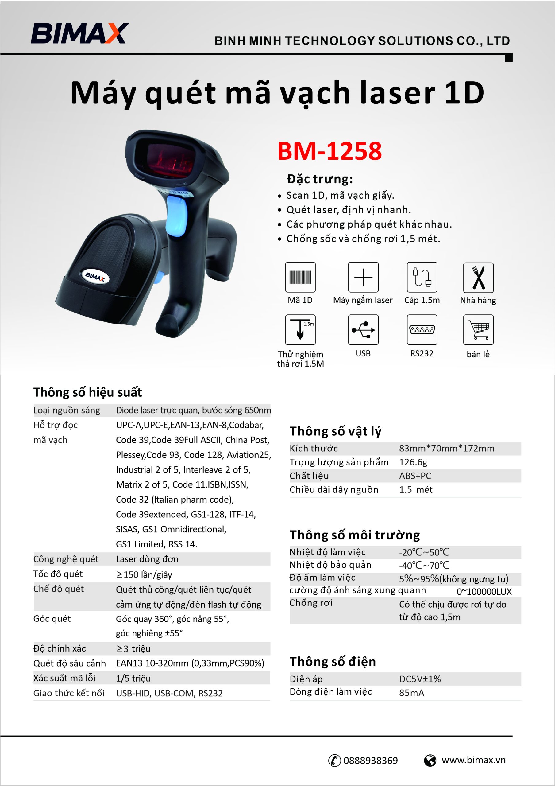 Máy quét mã vạch 1D Bimax BM-1258