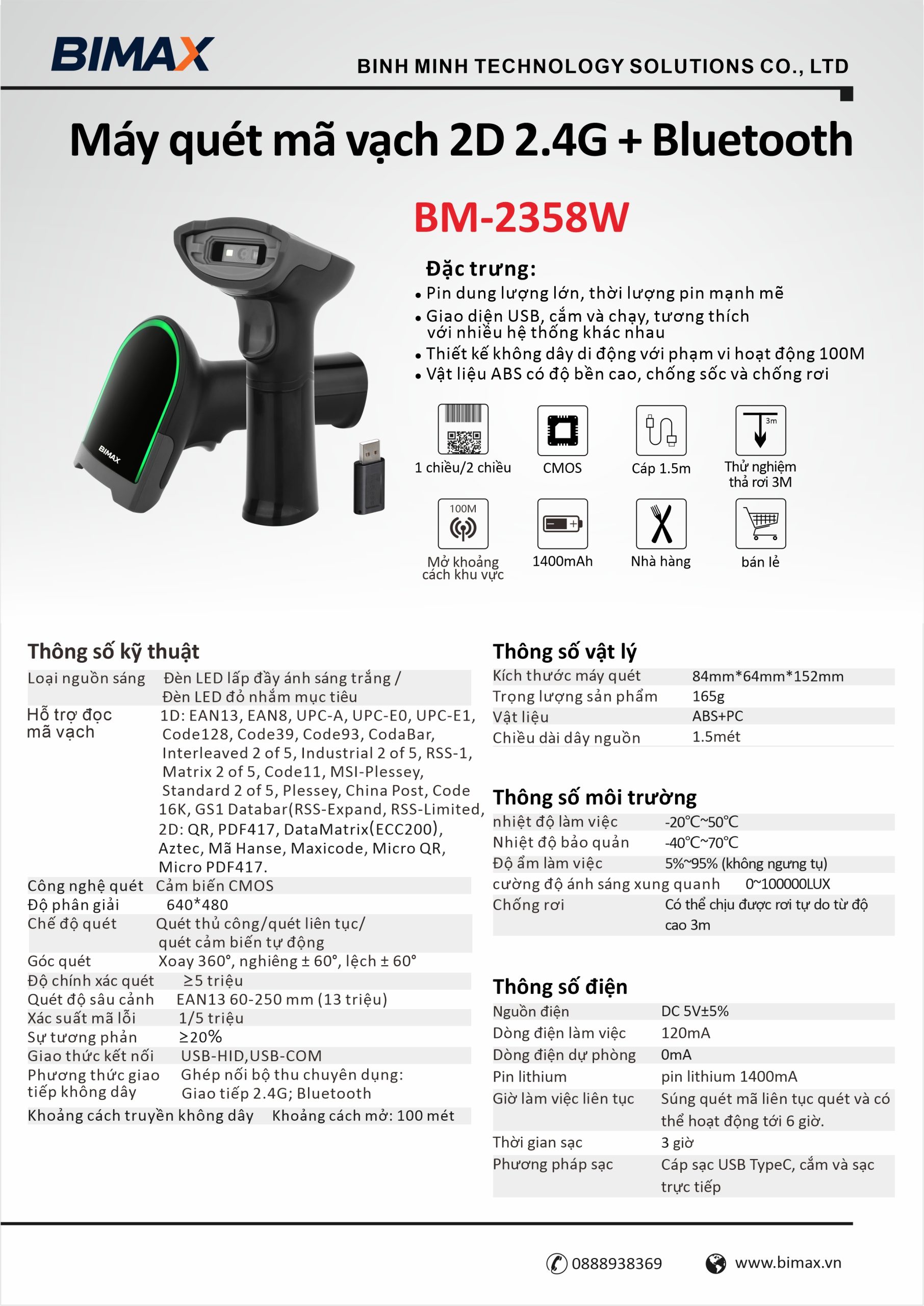 Máy quét mã vạch không dây 2D Bimax BM-2358W